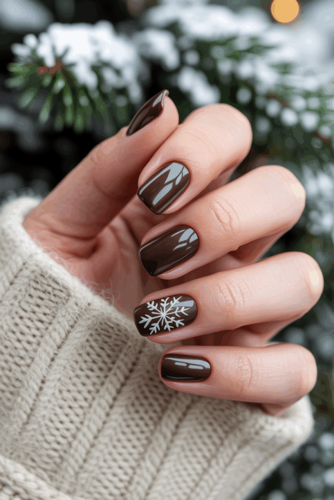 Classic dark chocolate nails offer a rich, deep brown shade perfect for winter. The color feels warm and sophisticated, fitting well with both casual and formal looks.
