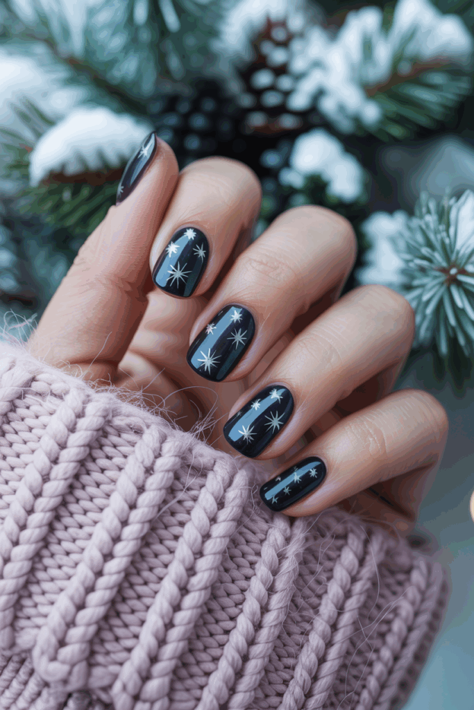 The silver stars catch light softly, making nails look elegant and seasonal. It works well for both short and long nails.
