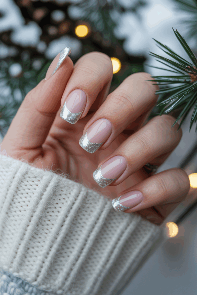 Icy silver French tips bring a cool, modern look to classic nails. They add a subtle shimmer that suits winter’s chill. This style pairs well with silver or white gold jewelry for a polished finish. It stays elegant while giving a fresh twist to the traditional French tip.