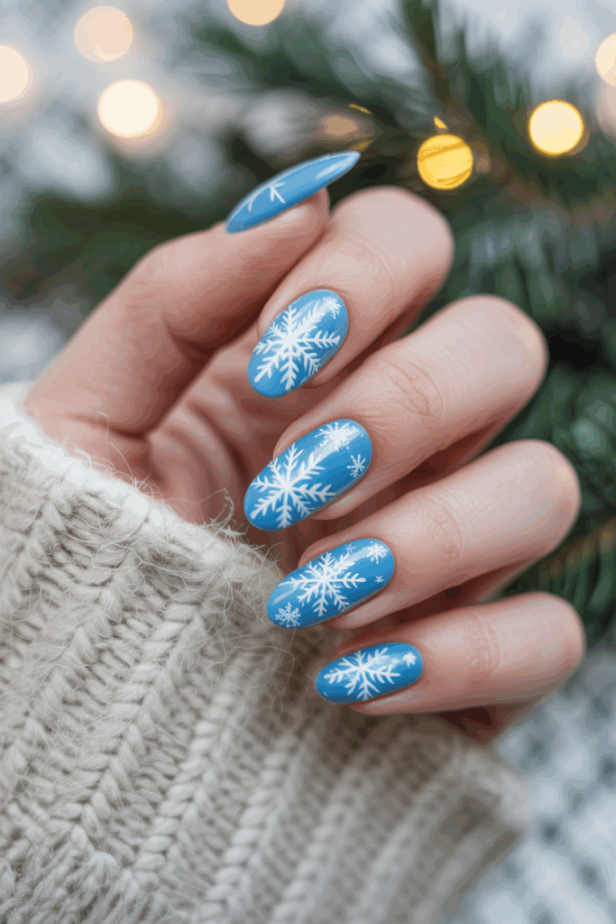 Snowflake pattern almond nails are a popular winter choice. They combine the soft, elegant shape of almond nails with delicate snowflake designs. This look adds a subtle, seasonal touch without being too flashy. It works well with both light and dark nail colors.