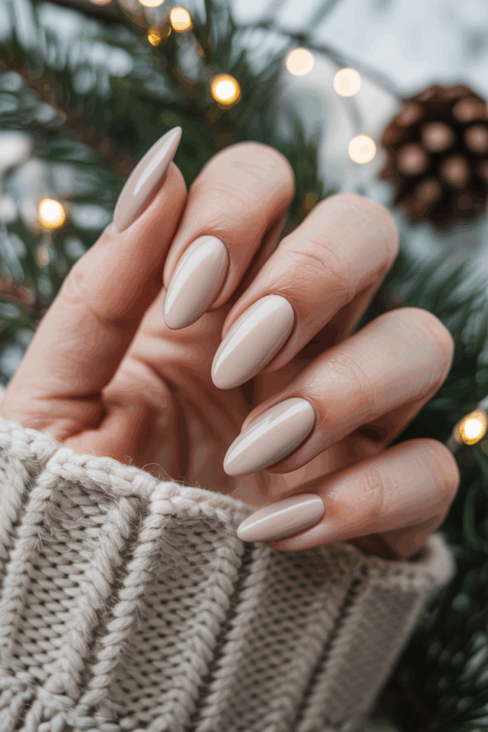 Beige almond nails offer a warm, neutral look perfect for winter. The soft color adds elegance without being too bold.