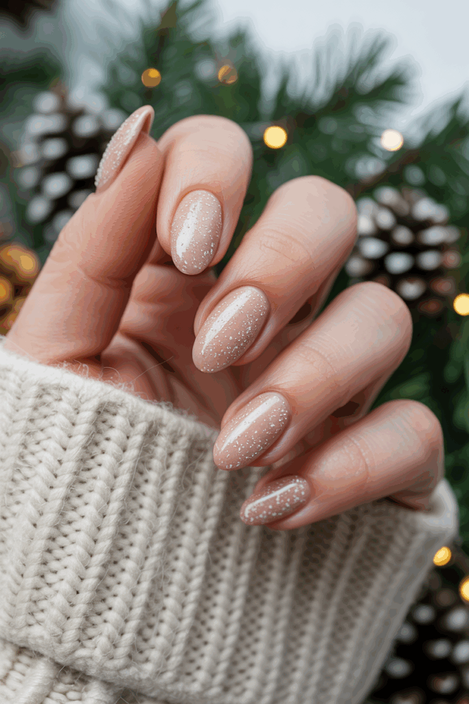 Glitter-dusted almond nails add a subtle shine that fits well with winter styles. The sparkle enhances the almond shape without being too bold. This look works with many colors, from soft neutrals to deep shades. It adds a simple yet elegant touch for the season.