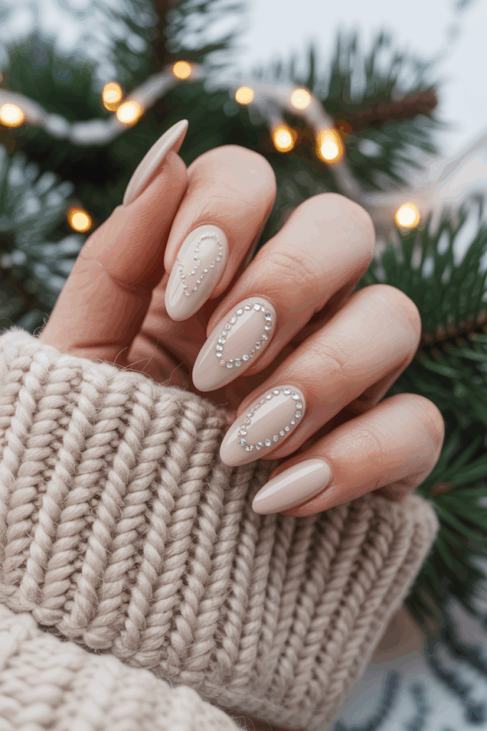This design uses a soft beige color that fits well with winter’s calm, cozy vibe. The almond shape adds a touch of elegance while keeping nails practical.