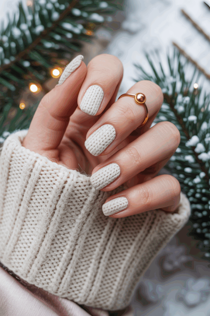 3) Cozy Cable-Knit Texture Nails