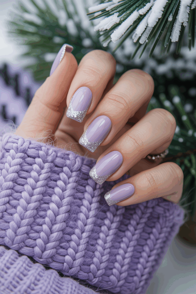 The mix of frosted lilac and silver glitter creates a simple but stylish look. It works for both casual and festive occasions.