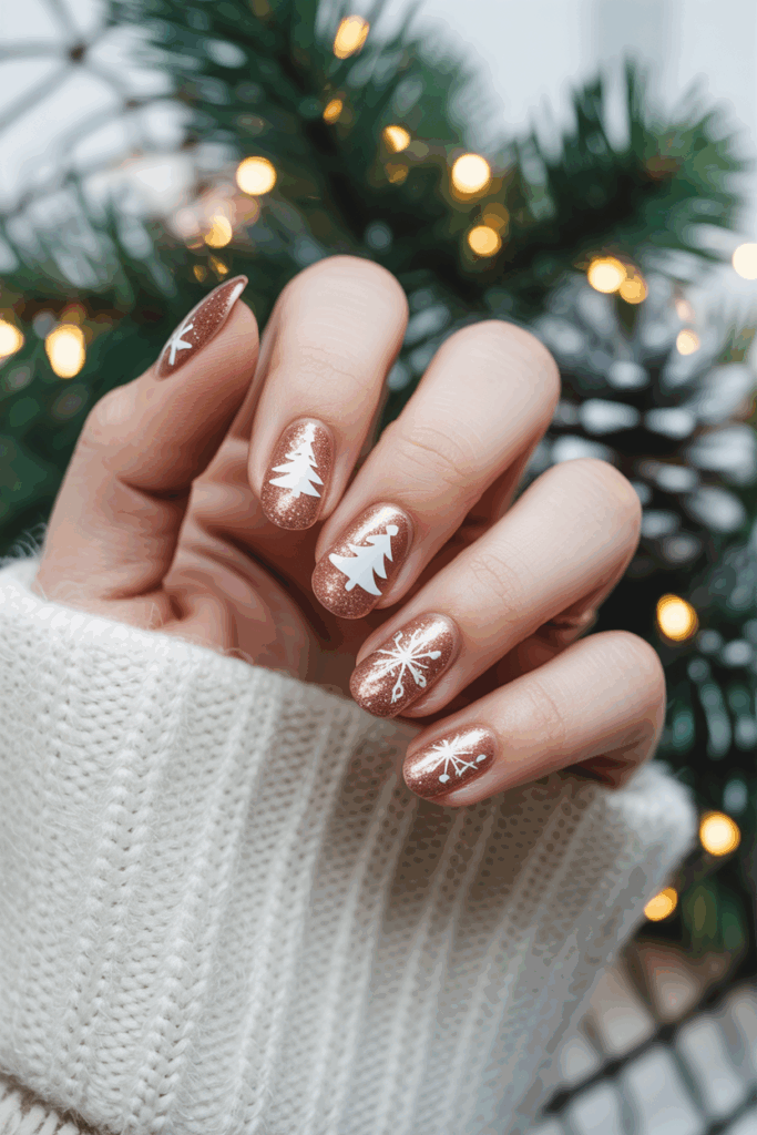 14) Glittery Rose Gold with Holiday Motifs