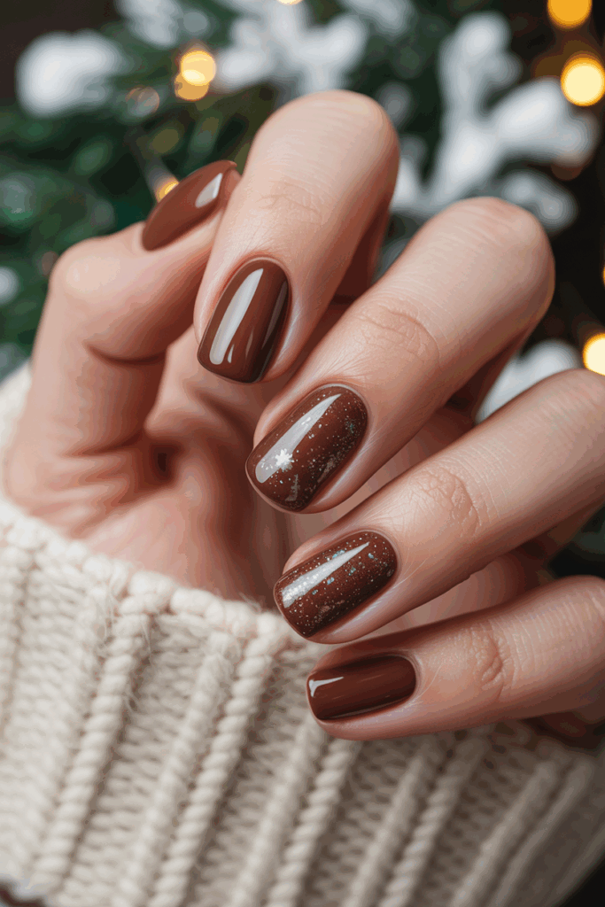This nail design features a deep chocolate brown base that feels warm and elegant.