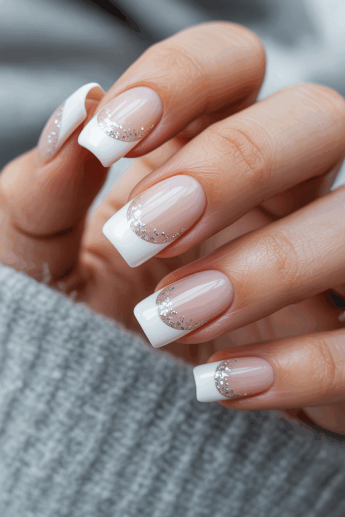 Frosted French tips add a cool, wintry look to classic nails. The tips have a soft, icy finish that feels fresh and simple.