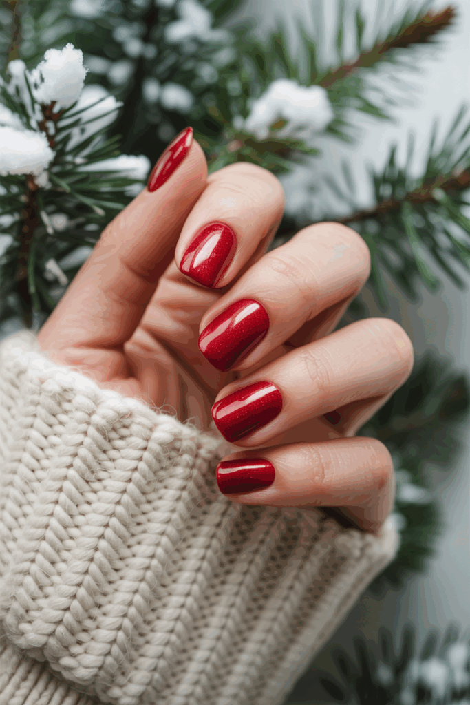 Classic red nails never go out of style during winter. Adding a subtle shimmer gives the color a soft glow without being too flashy.