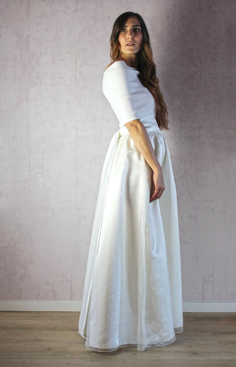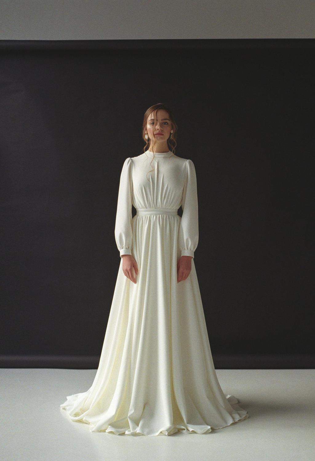 Long sleeve wedding dress Modest boho Minimalist bridal gown Modern for winter Crepe ivory wedding gown VESTA by ReevBridal