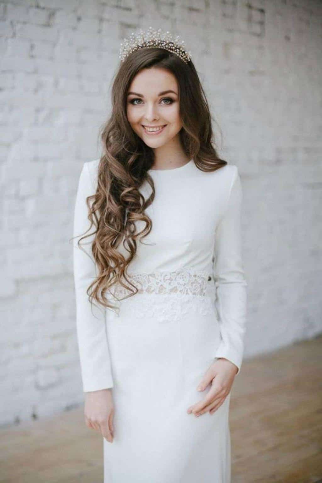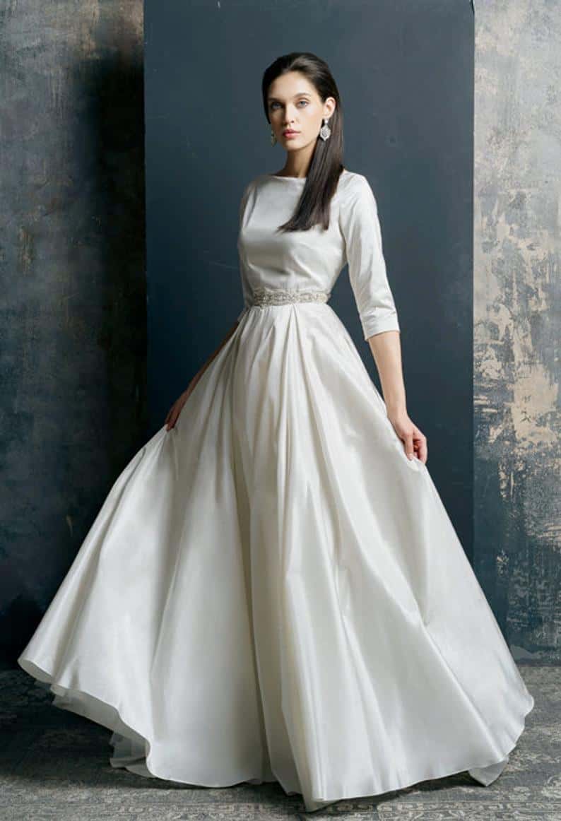 Elegant wedding dress with sleeves and belt by VICTORIASPIRINA