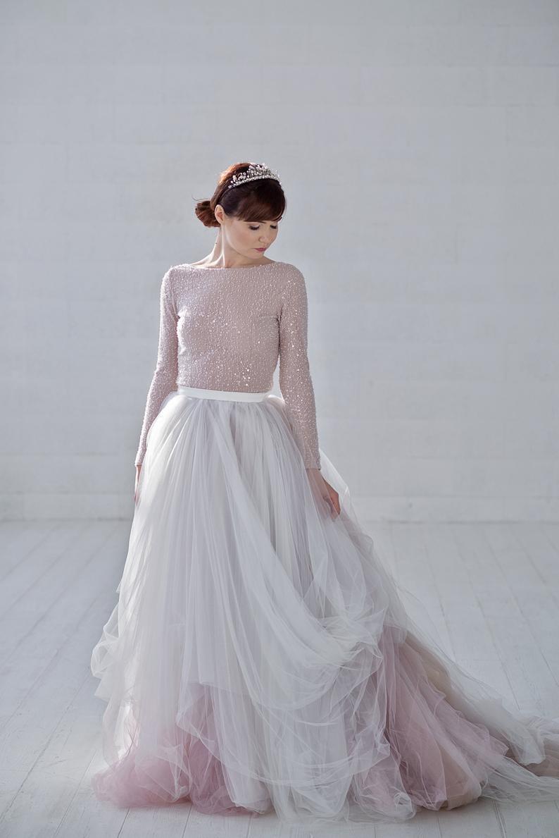 Raina – ombre tulle wedding dress / beaded wedding dress / sparkly ombre bridal gown / long sleeves wedding dress by WardrobeByDulcinea