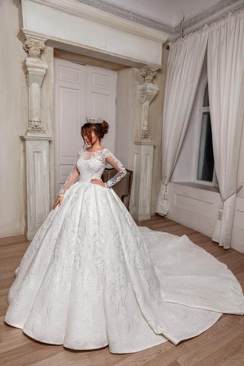 Wedding dress ANDROMEDA // Modest long sleeve wedding dress, winter wedding dress, jacquard wedding dress, corset gown, wedding, Milamira by MilarmiraBridal