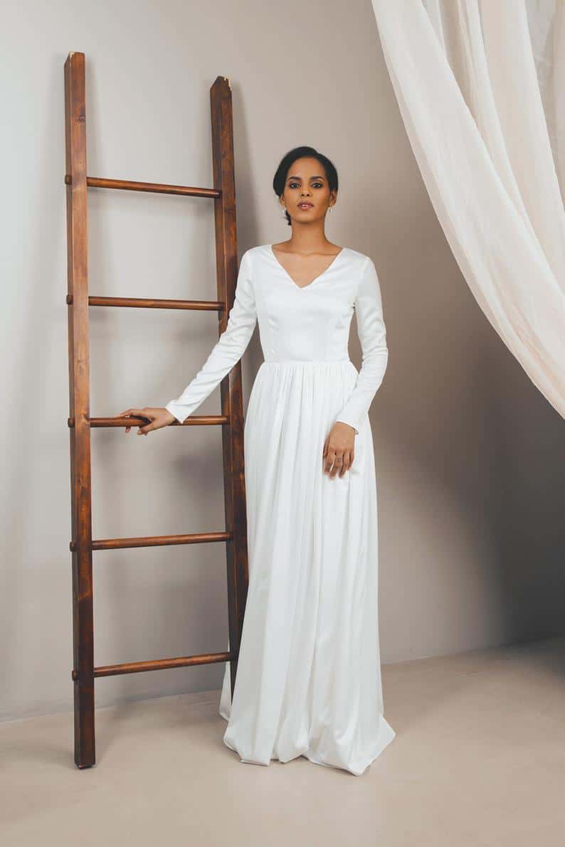 long sleeve simple wedding dress, Sale satin wedding dress, Romantic wedding dress, Boho wedding dress by 8byKate
