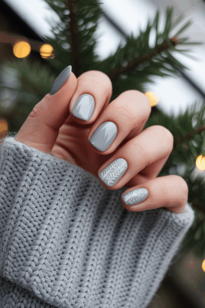 Inspired by cable knit sweaters, these nails use raised patterns or textured designs in soft grey tones. The result feels cozy and tactile.