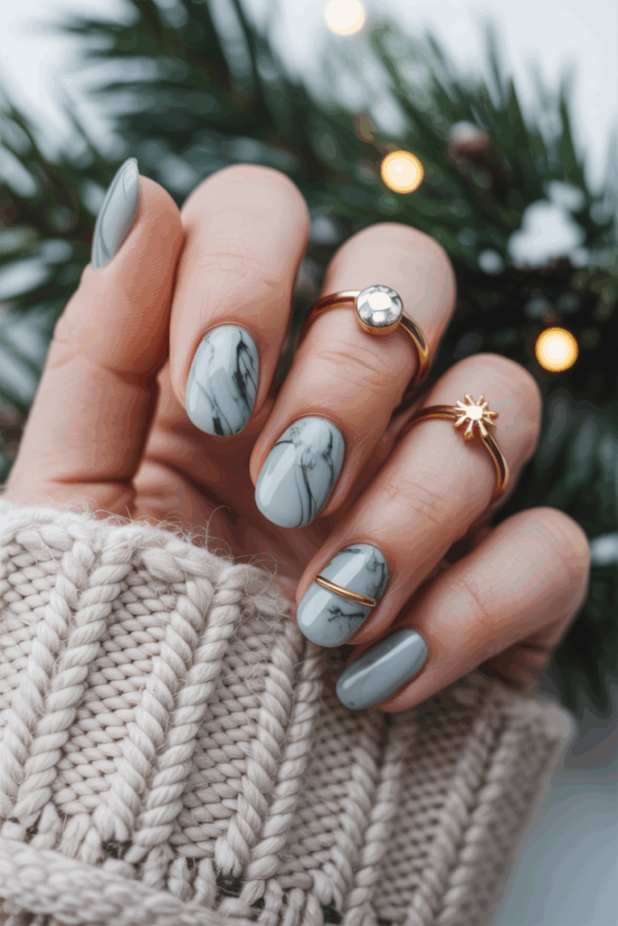 Marble nails complement tailored coats, leather boots, and neutral wardrobes. The design is usually created by swirling diluted polish or gel with a fine brush before curing.