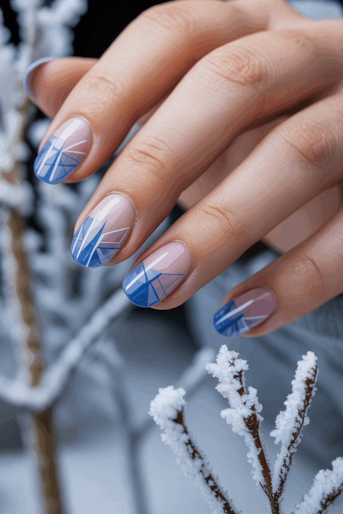 Snowy ombré nails pair well with almost any winter outfit. The effect is usually achieved with a sponge or airbrush technique for a smooth transition.